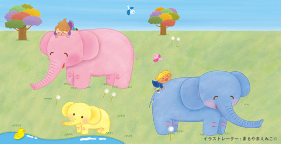 秋の草原とゾウさんと遊ぶ妖精の子どもたちを表現いたしました。 こんなふうにゾウさんと遊べたら楽しいな、って子どもの頃に考えていた気がしています。